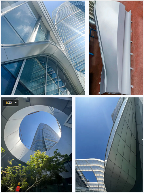 該項目幕墻系統(tǒng)繁多,施工難度大,制造工藝要求極高。南裙樓幕墻共計27個幕墻系統(tǒng),雅泰集團負責其中的金屬幕墻供材,幕墻構造上選擇的是框架式鋁板幕墻。