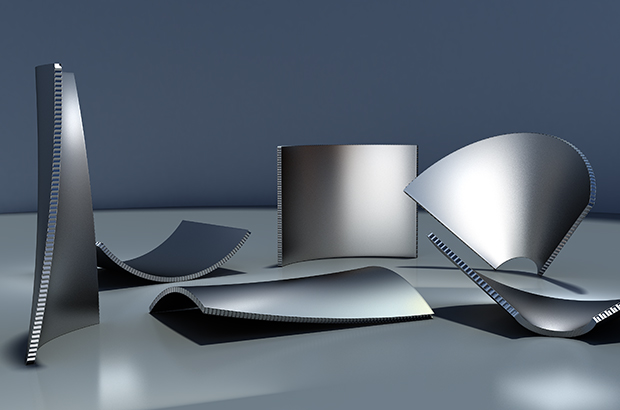 雅泰通過各種技術(shù)攻關(guān),解決雙曲鋁蜂窩板雙扭曲問題,形成了一整套的無折痕鋁蜂窩板的加工成型技術(shù),實現(xiàn)雙曲鋁蜂窩板的工業(yè)化生產(chǎn)。